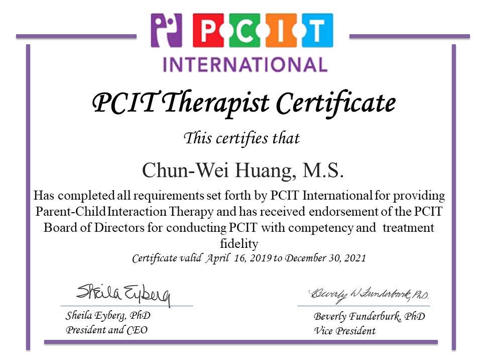 本所黃春偉臨床心理師通過國際親子互動治療協會(PCIT International)的認可,成為台灣第二位合格的治療師,可以在本所進行「親子互動治療」。詳情請見:http://www.pcit.org/taiwan.html。