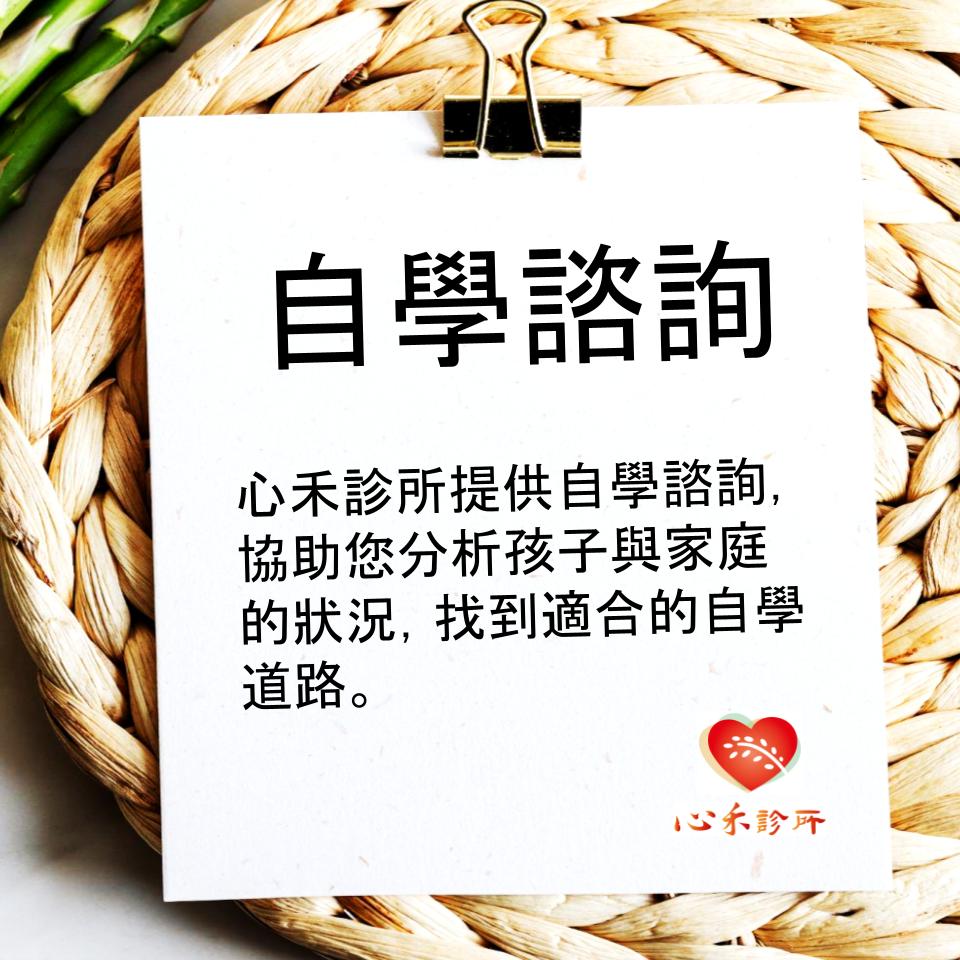 心禾診所目前提供自學諮詢,協助您從自身與家庭,小孩與大人的整體狀況分析,找到適合您與孩子的自學道路。