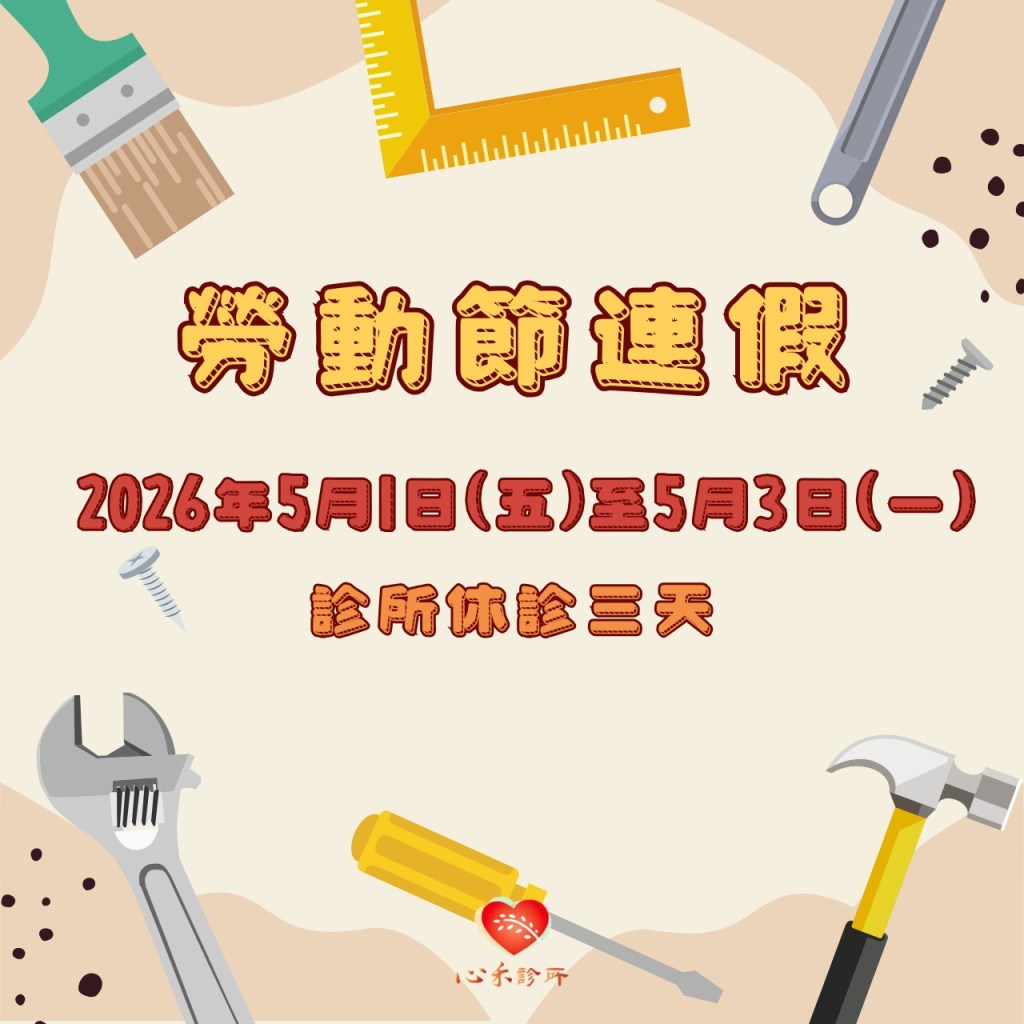 本所於5/1(五)到5/3(日)因勞動節連假,以及6/19(五)到6/21(日)因端午連假休診。